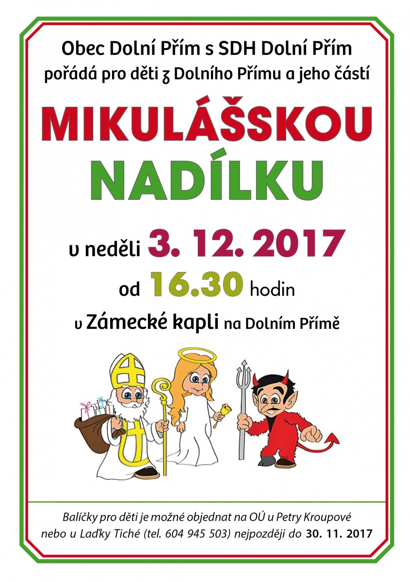 U příležitosti rozsvěcení vánočního stromu v neděli 3. 12. 2017, se bude konat v Zámecké kapli Mikulášská nadílka.